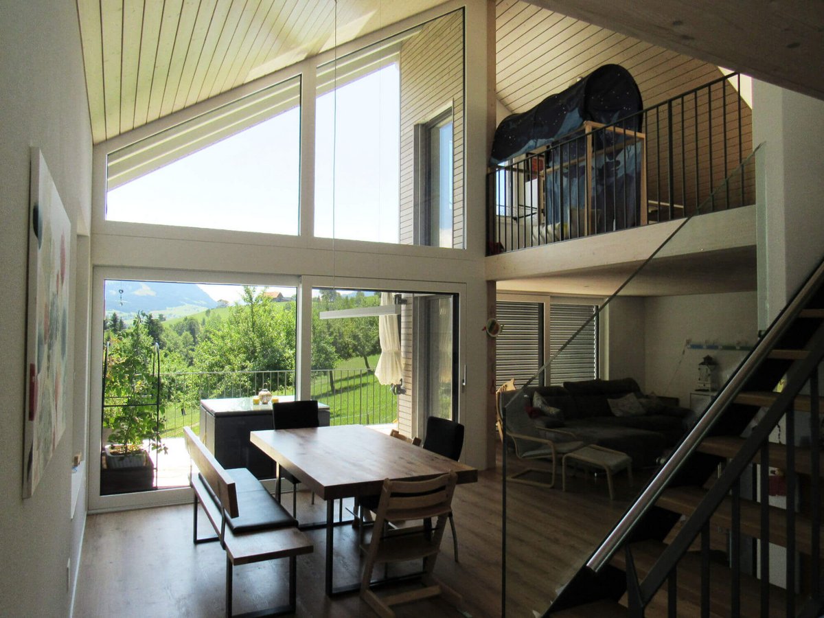 - Auftrag: Holzelementbau ab Decke über Untergeschoss, Innenausbau, Treppenbau, Fassadenschalung in Holz